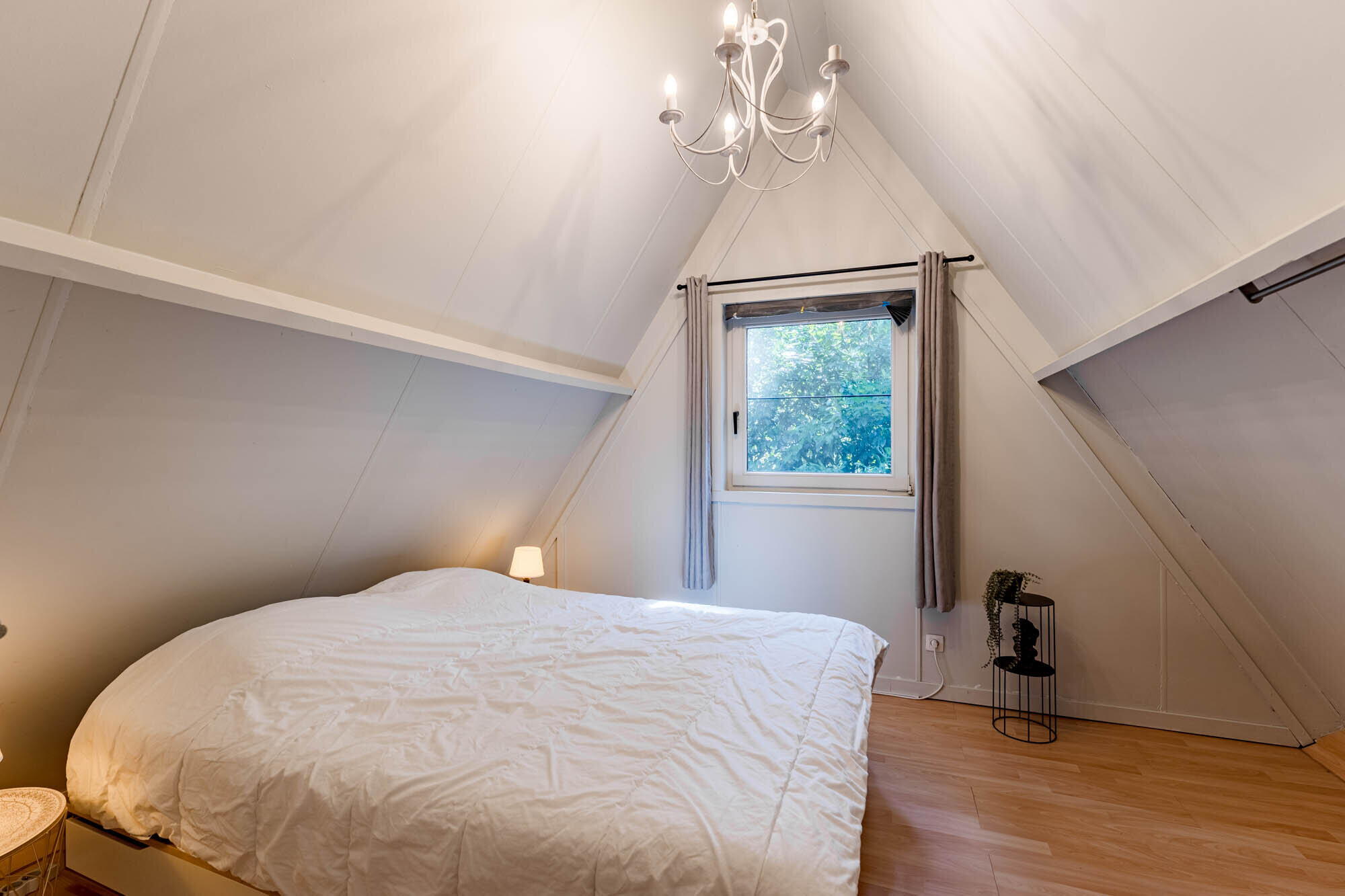 - Slaapkamer 1 op het gelijkvloers afgewerkt met laminaat, 1 persoonsbed en een inbouwkast;